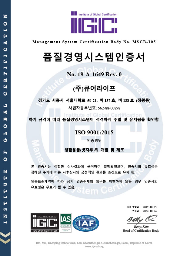 품질경영시스템 인증 ISO9001 획득